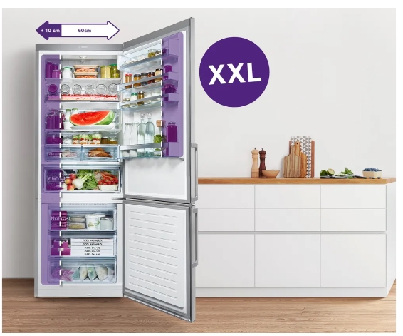 Majhna razlika v centimetrih, a velika razlika v prostornini: že majhna količina dodatnih centimetrov v širini v primerjavi s standardnim modelom vam dovoljuje, da v naše samostoječe kombinirane hladilnike z zamrzovalnikom spravite cele pekače, pa tudi velike lubenice in druge velike izdelke. Večja notranjost daje popoln pregled in maksimalno fleksibilnost.