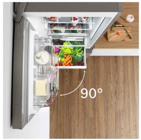 Hladilnik lahko postavite, kamorkoli želite.Drugi standardni modeli hladilnikov z zamrzovalnikom potrebujejo približno 10 cm razdalje od stene, da lahko odpirate vrata in predale.Po zaslugi sistema Perfect Fit lahko prostostoječe hladilnike z zamrzovalnikom Bosch namestite tik ob steno in pohištvo.Širina hladilnika z zamrzovalnikom ustreza dimenzijam niše.