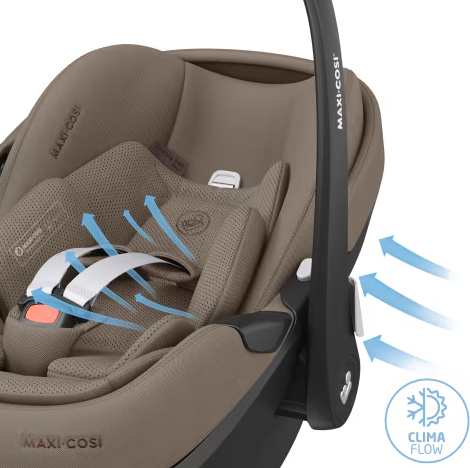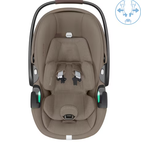 Prevleka je pralna v pralnem stroju (do 30 °C), materiali brez škodljivih kemikalij, sedež pa je del potovalnega sistema 3-v-1 – kompatibilen z vozički in košarami Maxi-Cosi.