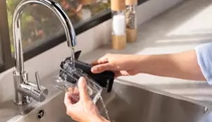 Sestavljen iz le dveh delov brez cevk, omogoča hitro čiščenje v 10 sekundah pod vodo ali v pomivalnem stroju.