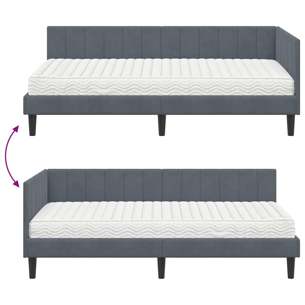 VIDAXL Kotna postelja z vzmetnico Temno siva 90 x 190 cm Žamet