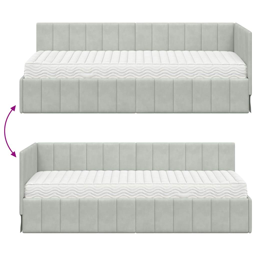 VIDAXL Kotna postelja z vzmetnico Svetlo siva 80 x 200 cm Žamet