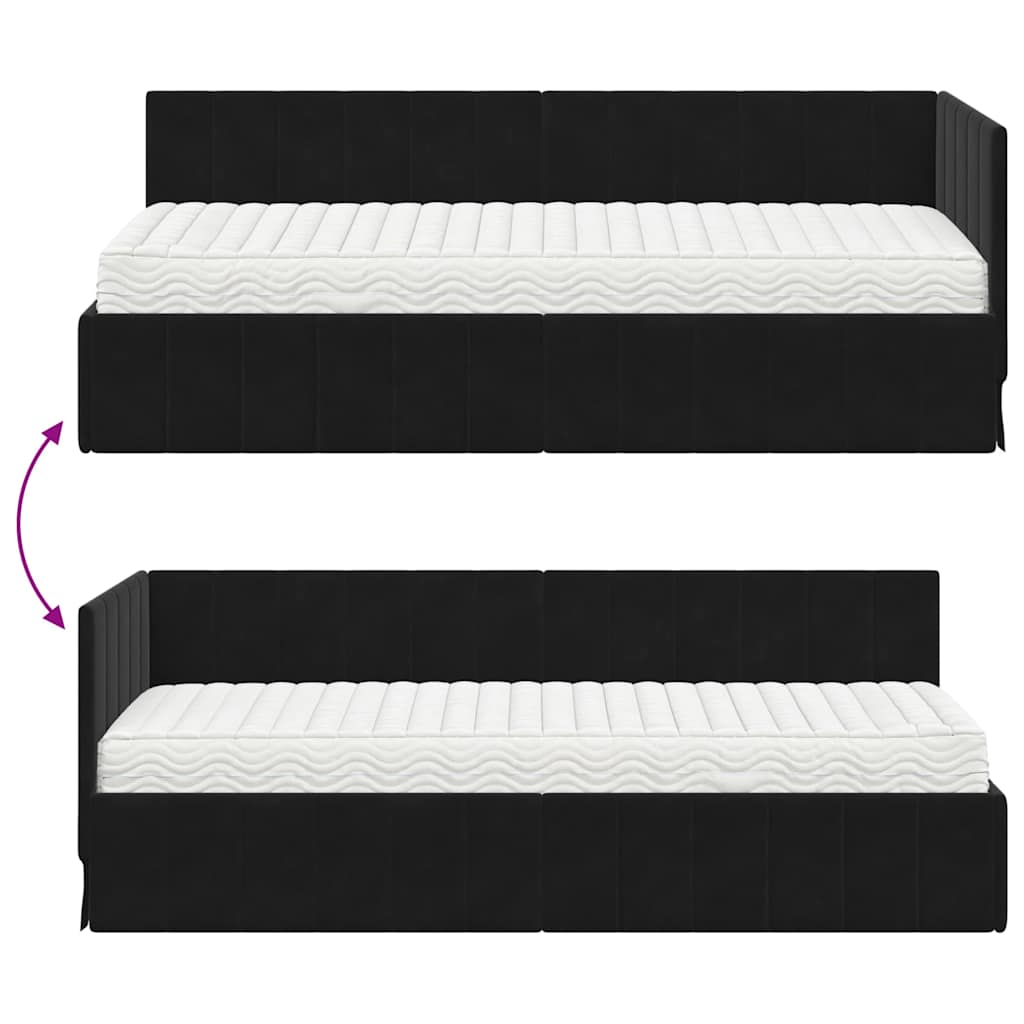 VIDAXL Kotna postelja z vzmetnico z vzglavjem Črna 80 x 200 cm Žamet