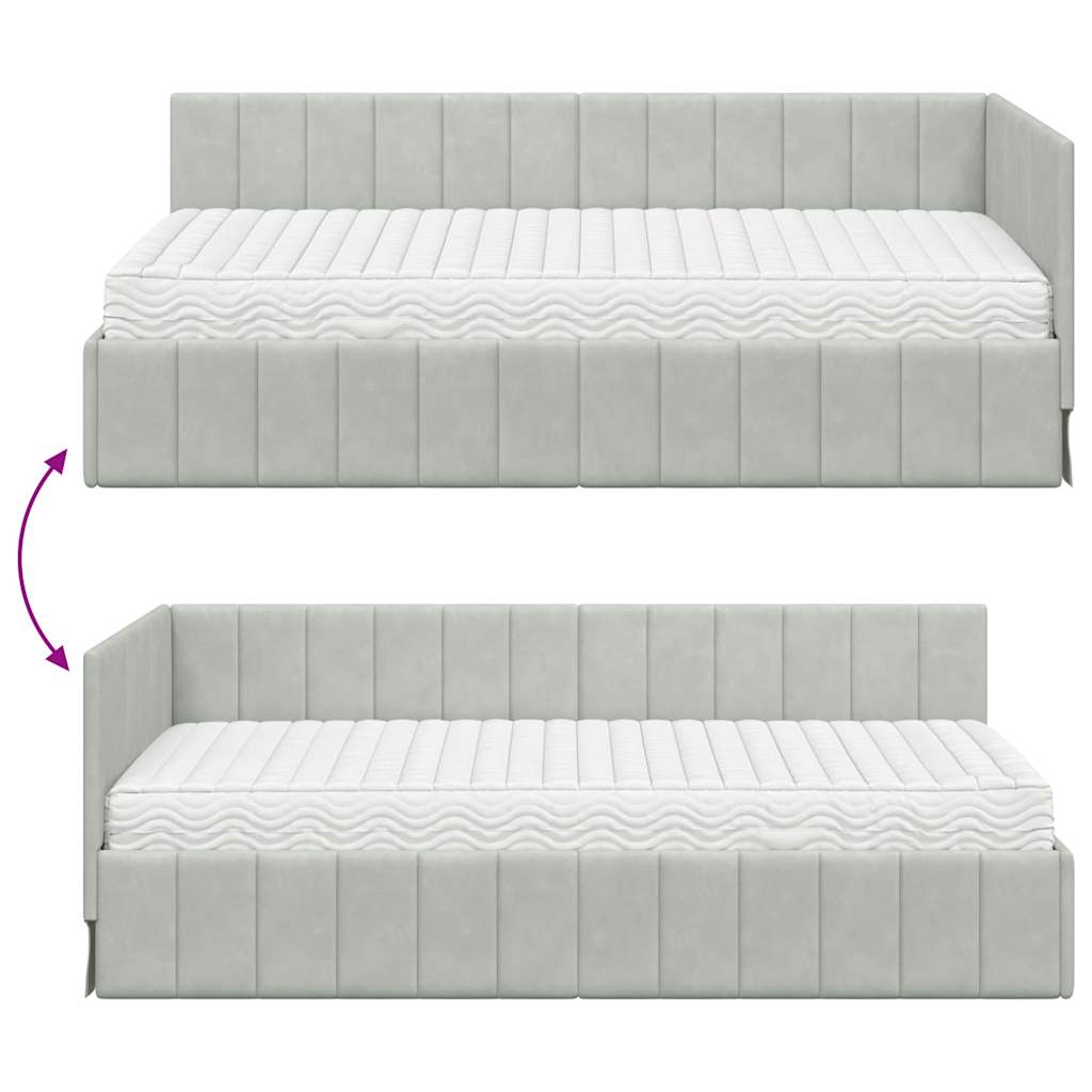 VIDAXL Kotna postelja z vzmetnico Svetlo siva 90 x 190 cm Žamet
