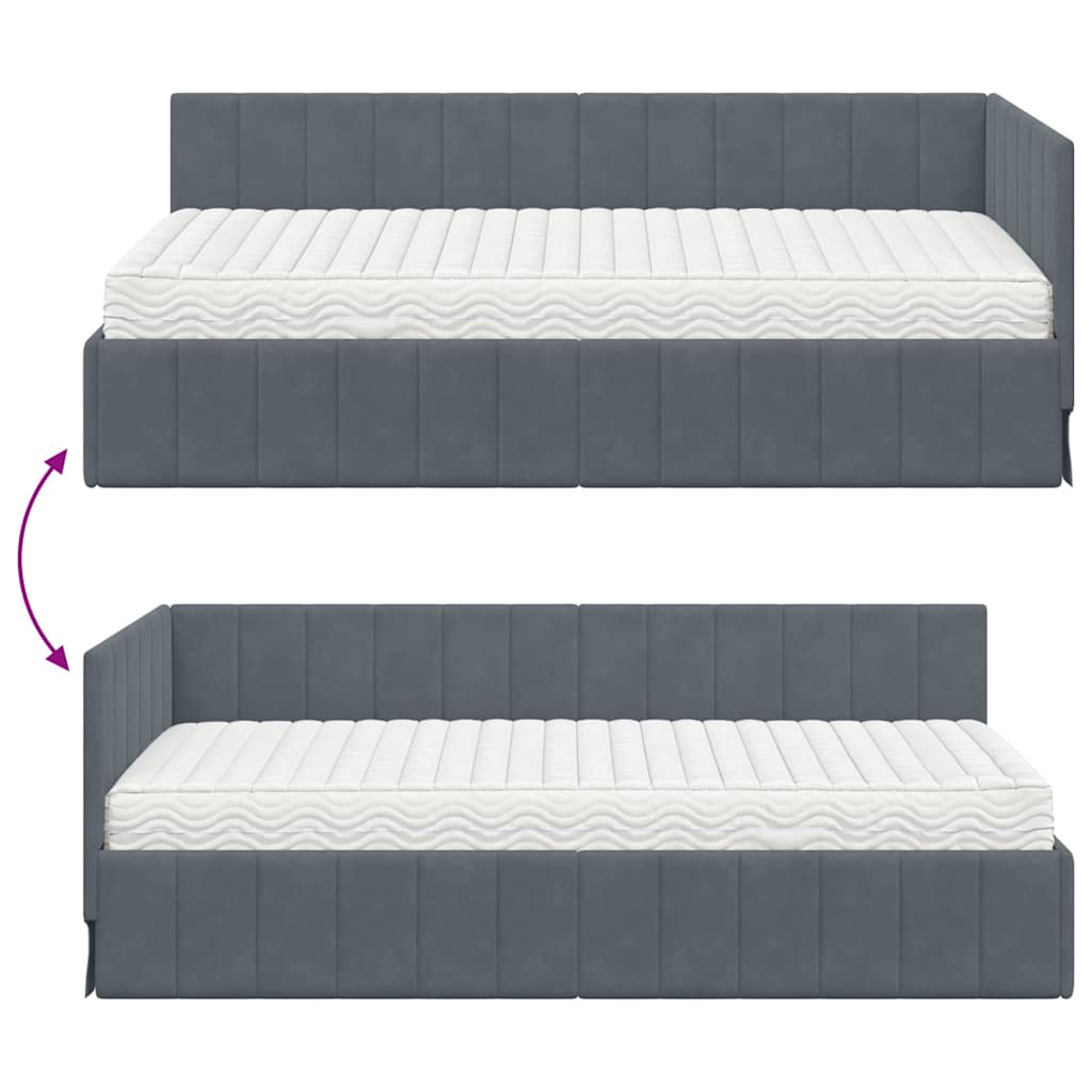 VIDAXL Kotna postelja z vzmetnico Temno siva 90 x 190 cm Žamet