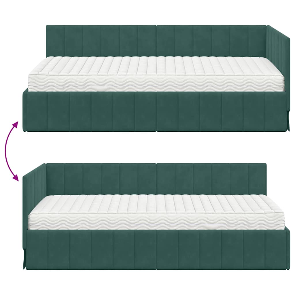 VIDAXL Kotna postelja z vzmetnico Temno zelena 90 x 190 cm Žamet