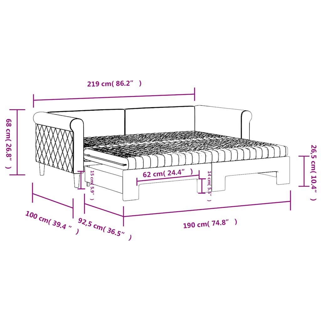 VIDAXL Izvlečna dnevna postelja z vzmetnico tem. siva 90x190 cm žamet