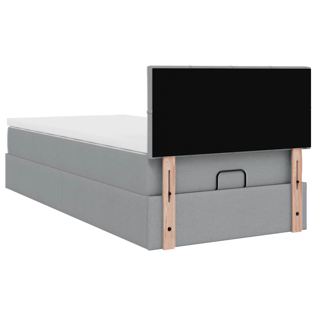 VIDAXL Otomanska postelja z vzmetnico&LEDs svetlo siva 80x200cm blago
