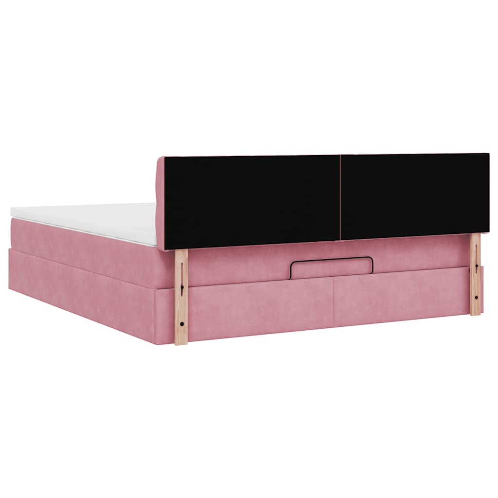 VIDAXL otomanska postelja z vzmetnico, žamet, roza, 180×200 cm