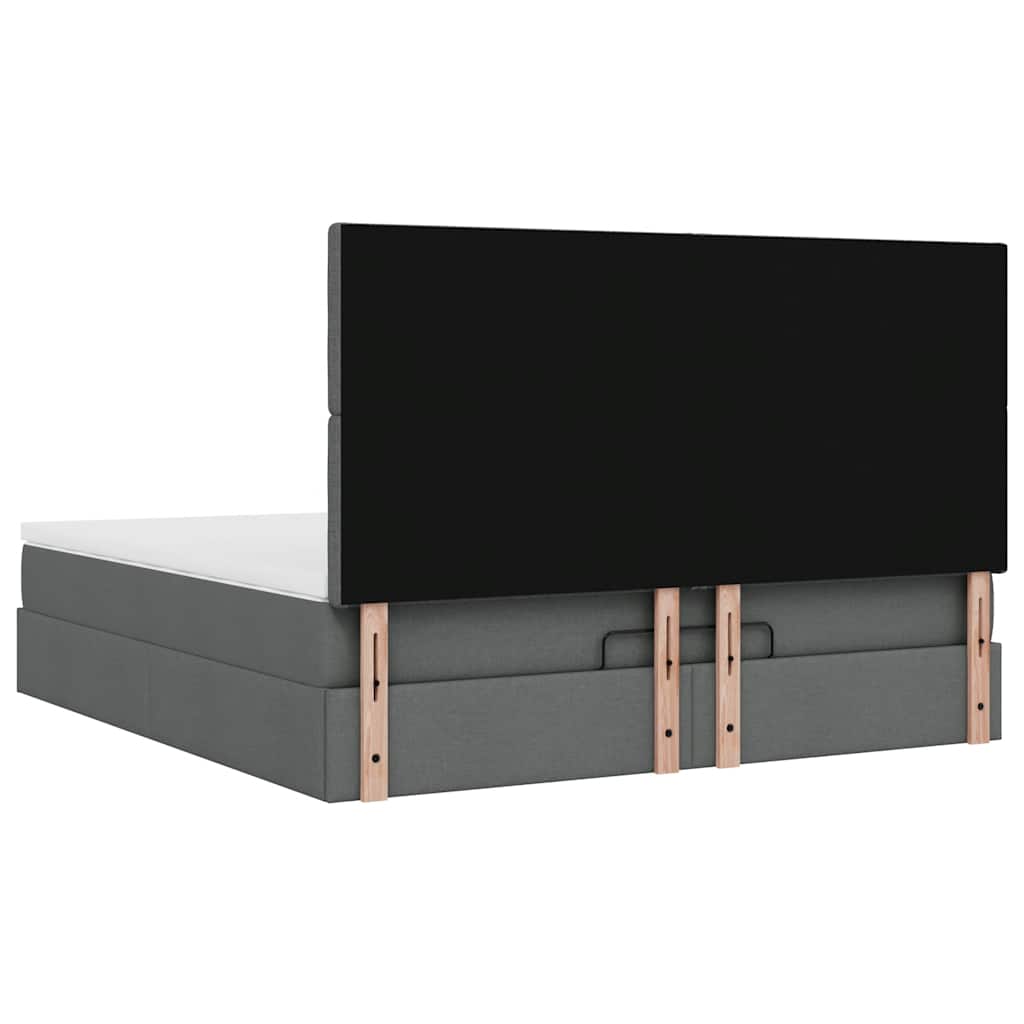 VIDAXL Otomanska postelja z vzmetnico&LEDs temno siva 180x200cm blago