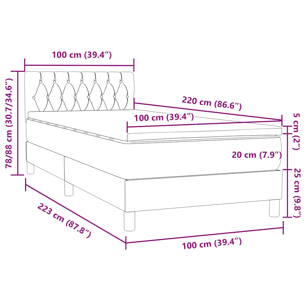 VIDAXL boxspring postelja z vzmetnico, žamet, roza, 100×220 cm