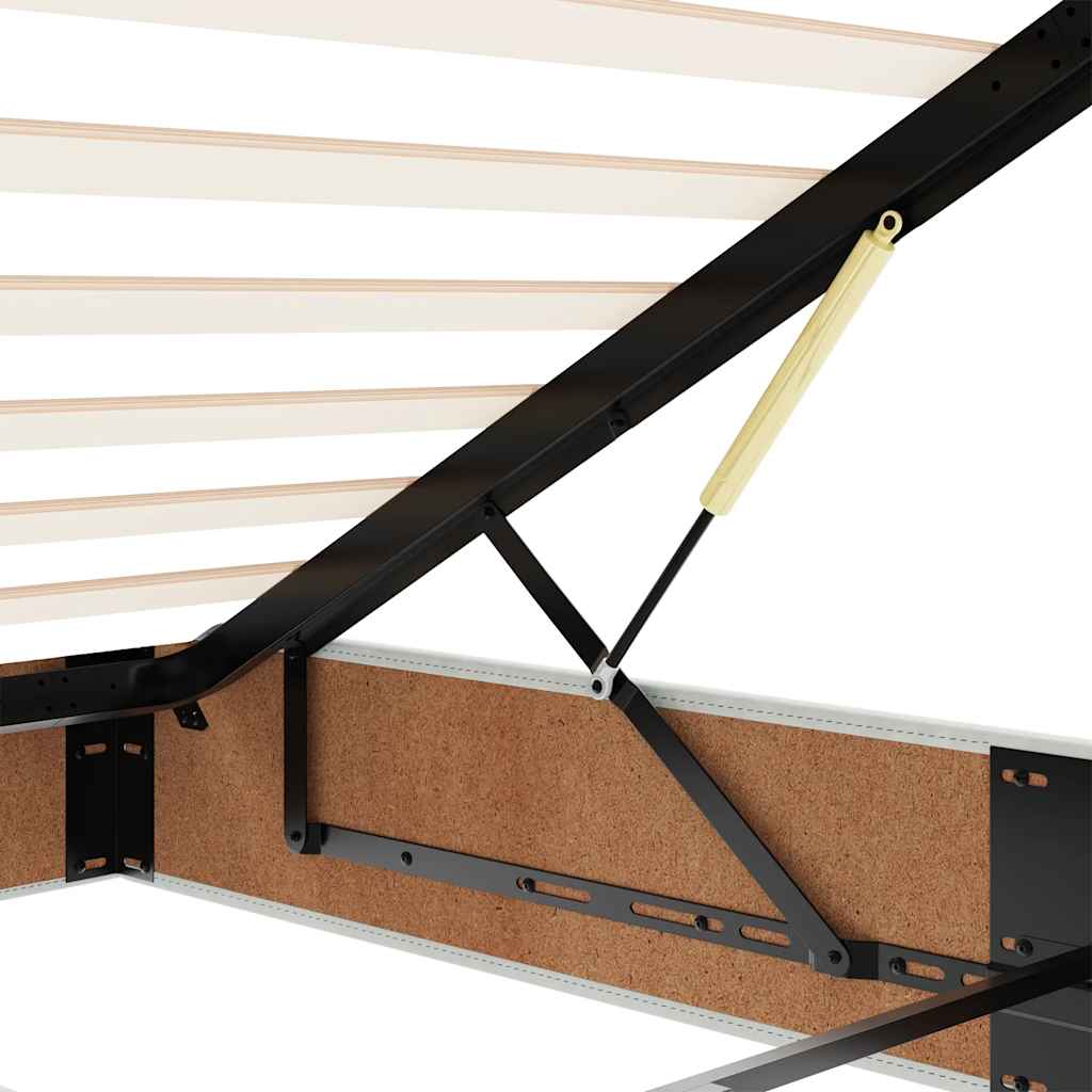 • Veliko prostora za shranjevanje pod posteljo: Zahvaljujoč hidravličnemu dvižnemu mehanizmu je pod posteljnim okvirjem na voljo veliko prostora za shranjevanje pod posteljo, kar povečuje prostor, ne da bi zavzemal dodatno talno površino. S preprostim potegom ročaja se podnožje z letvami gladko dvigne, tako da lahko hitro in brez napora poberete svoje predmete.