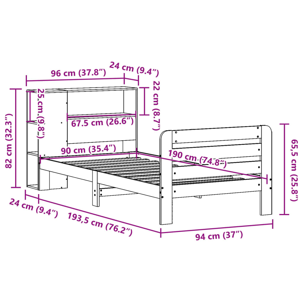 VIDAXL Posteljni okvir brez vzmetnice 90x190 cm trdna borovina