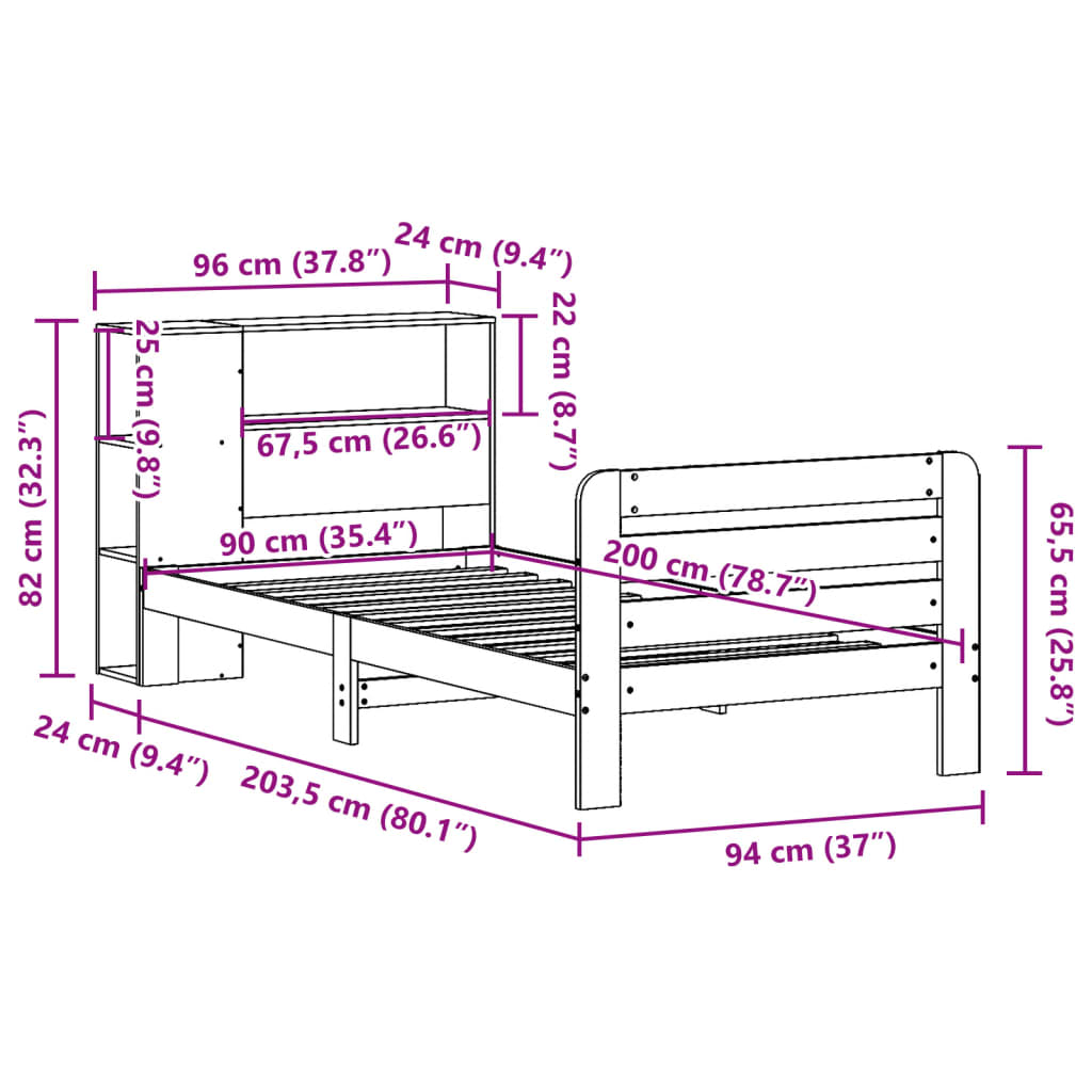 VIDAXL Posteljni okvir brez vzmetnice 90x200 cm trdna borovina