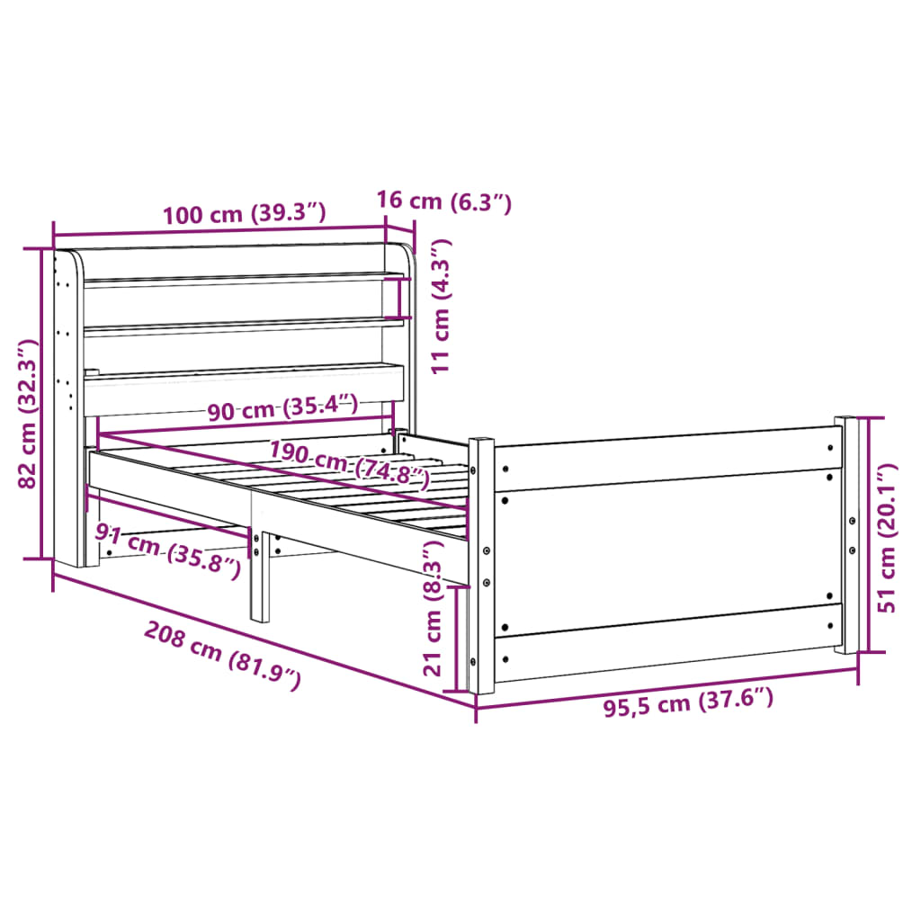 • Velikost primerne vzmetnice: 90 x 190 cm (Š x D) (vzmetnica ni priložena)