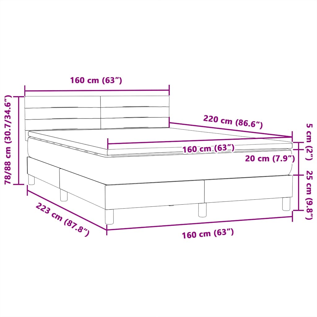 VIDAXL boxspring postelja z vzmetnico, žamet, roza, 160×220 cm