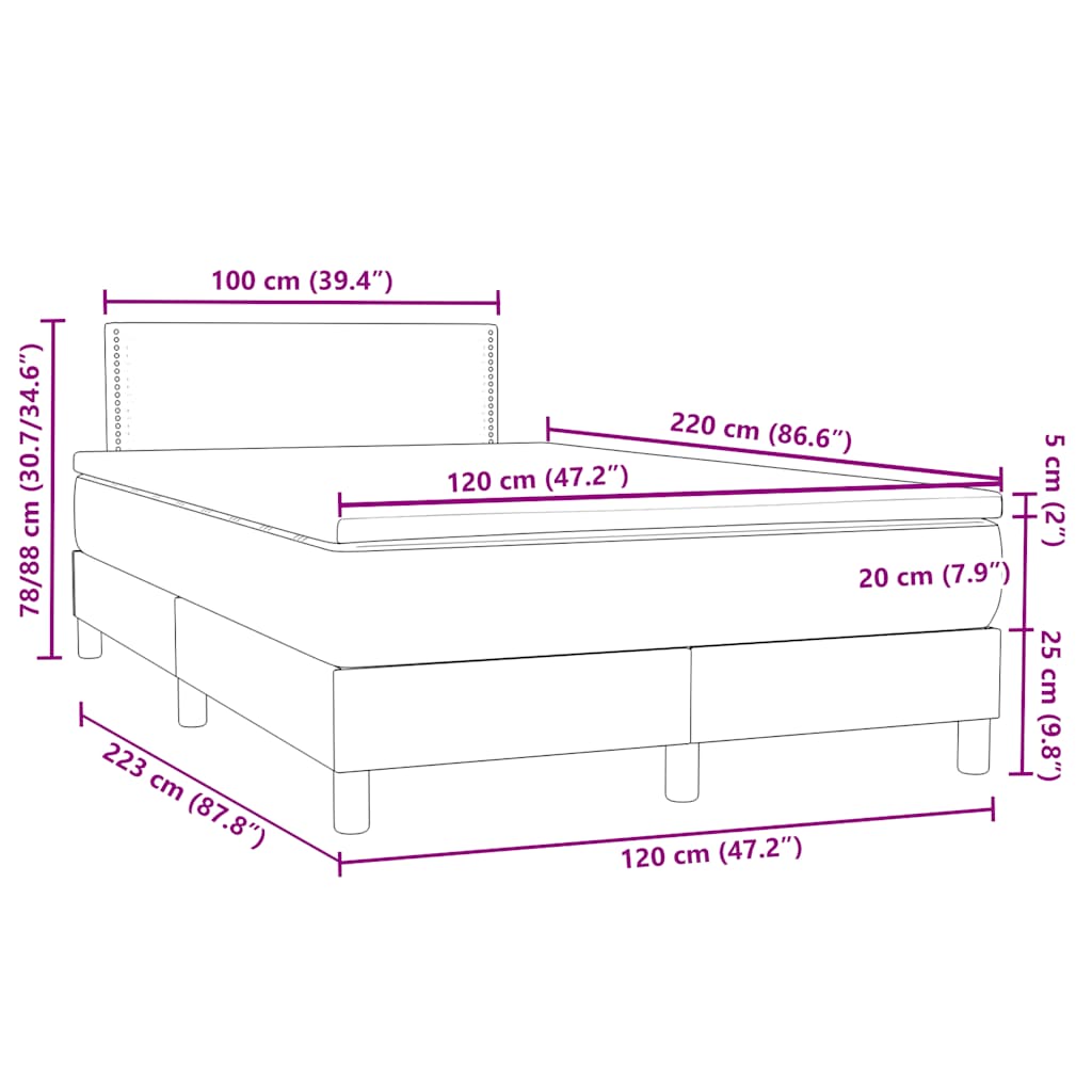 VIDAXL boxspring postelja z vzmetnico, žamet, roza, 120×220 cm