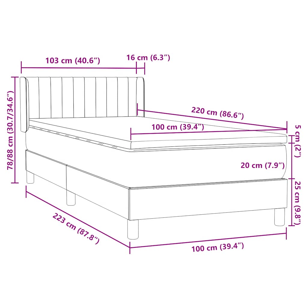 VIDAXL boxspring postelja z vzmetnico, žamet, črna, 100×220 cm
