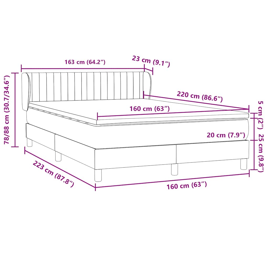 VIDAXL boxspring postelja z vzmetnico, žamet, svetlo siva, 160×220×88 cm
