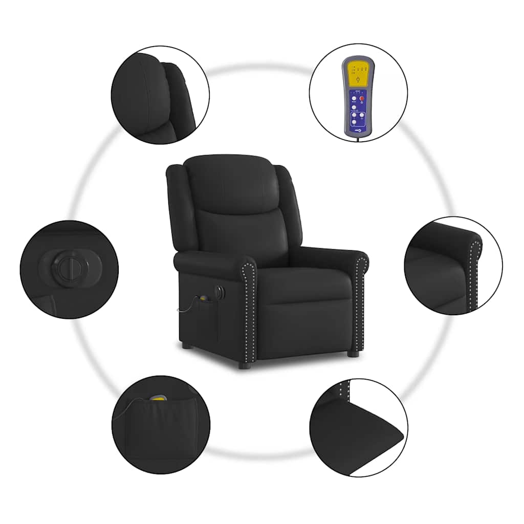 VIDAXL Električni masažni nagibni stol Shiny Black Faux Leather