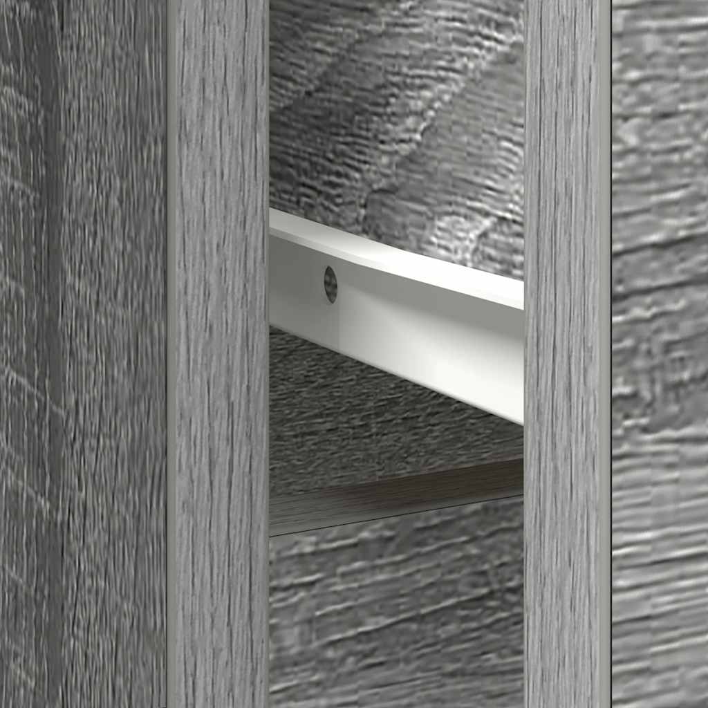 • Prilagodljiva namestitev: Komodo je mogoče sestaviti v dveh konfiguracijah, kar vam omogoča, da postavite predal in majhna vrata na desno ali levo stran, z večjimi vrati. Ta prilagodljivost zagotavlja, da izpolnjuje vaše posebne potrebe in želje.