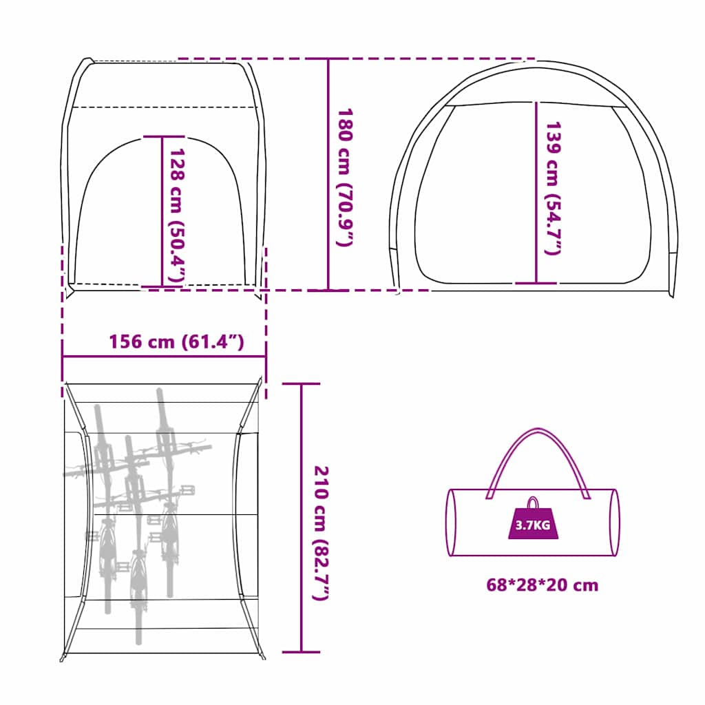 Prenosni zunanji šotor za kolesa je zasnovan za moderne ljubitelje narave, nudi trdno uporabo in svež videz. Popoln je za kampiranje, ima prijetno valjast obliko in modern videz, z matirano površino in gladko teksturo. Prostoren je in nudi veliko prostora za kolesa in vse druge potrebščine, zato je res nepogrešljiv za vsako outdoor avanturo.