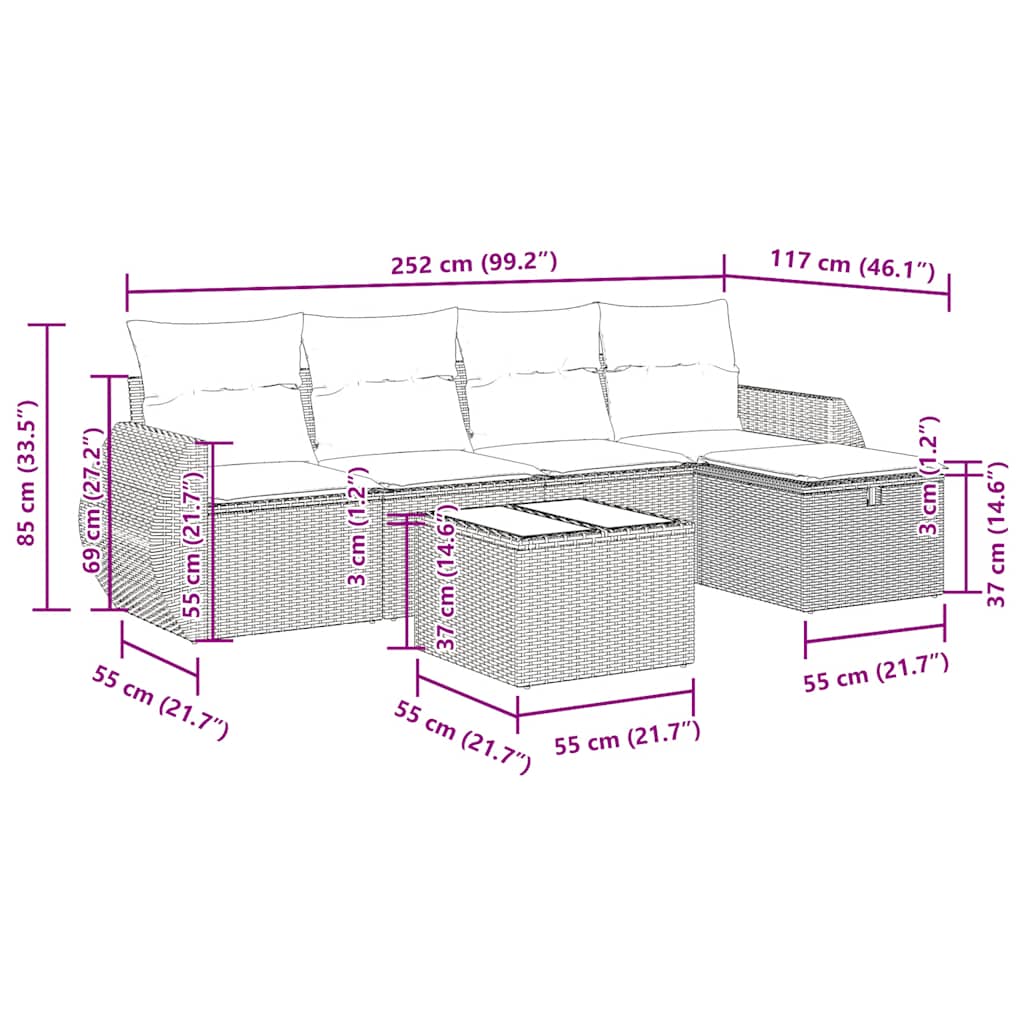 Ta vrtna sedežna garnitura je popoln dodatek za vaše dvorišče, teraso ali verando, saj zagotavlja udoben in vabljiv prostor za klepet z družino in prijatelji ali preprosto za sprostitev in uživanje na prostem.