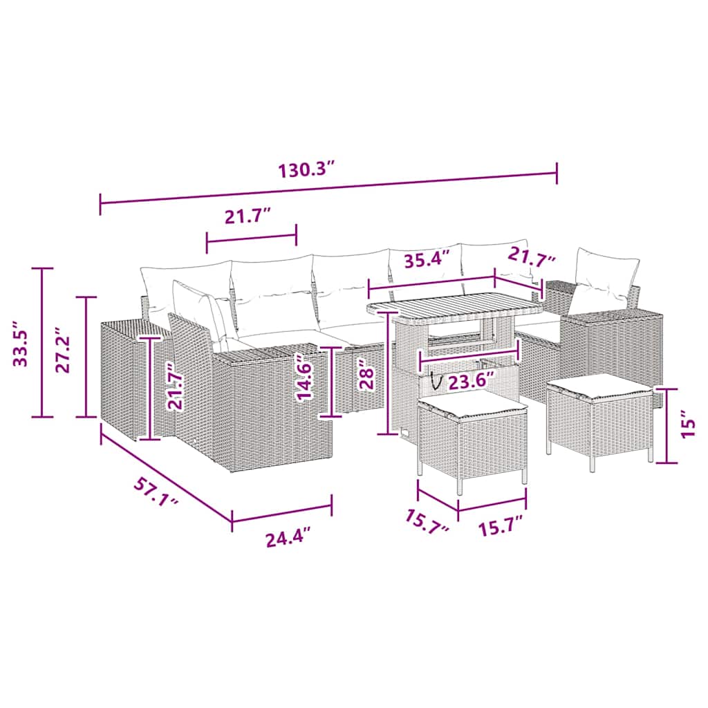 VIDAXL Vrtna sedežna garnitura 10 pcs Črna poli ratan