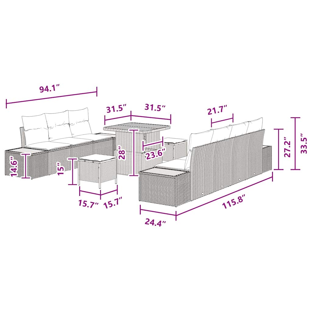 Ta stilski vrtni set za sedenje združuje dizajn in praktičnost, zato je super izbira za zunanje prostore, kot so vrtovi in terase. Pravokotni jedilni set je dovolj velik za deset ljudi, kar pomeni, da ti daje obilo prostora za druženje ali preprosto lenarjenje. Njegov eleganten, preprost videz s čistimi linijami in nobenim odvečnim okrasjem dodaja sproščeno, a classy vzdušje vsakemu zunanjemu prostoru. Uživaj v obrokih na prostem, sproščaj se ali pa le preživiš čas s prijatelji in družino, obdan s tem toplim dizajnom.