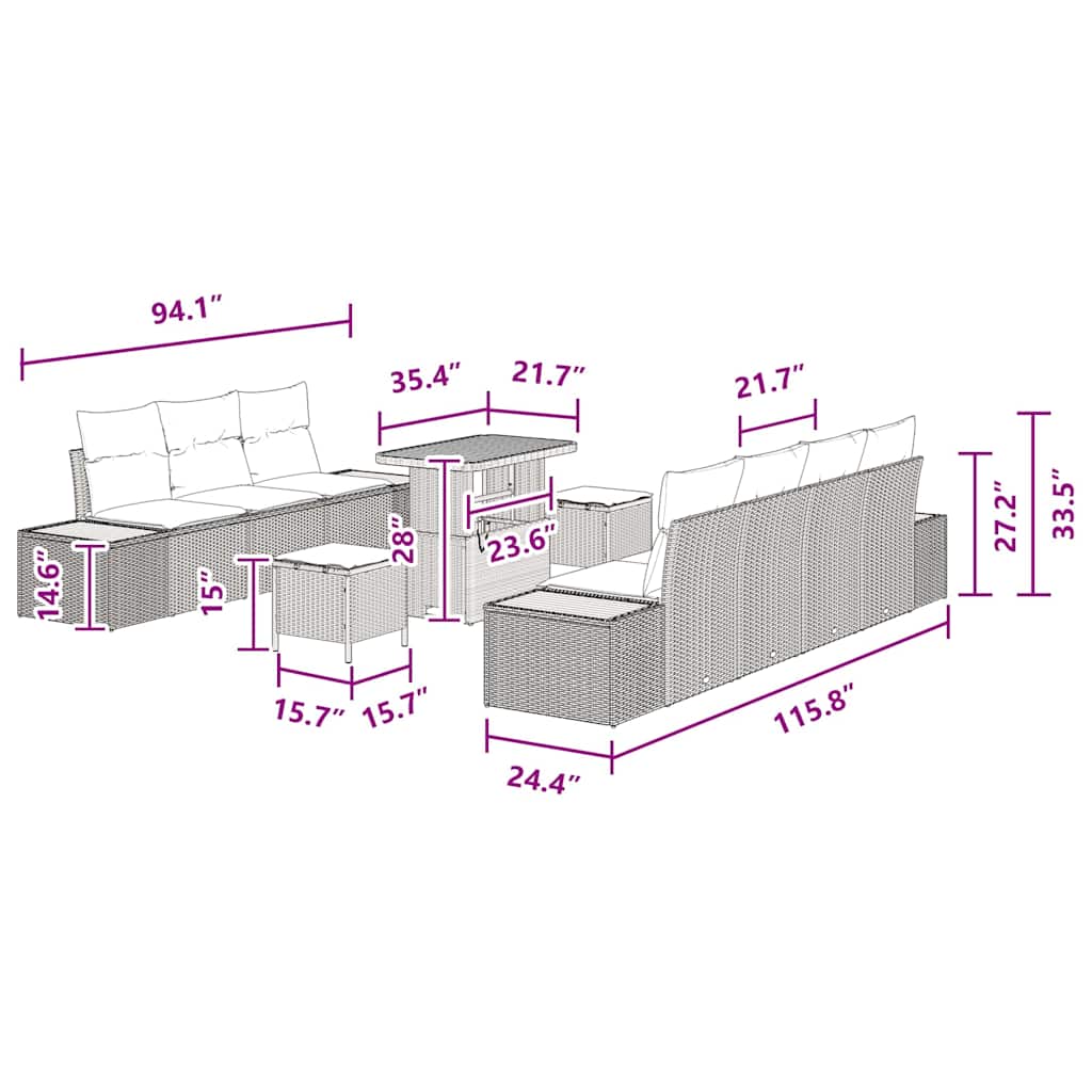 VIDAXL Vrtna sedežna garnitura z blazino 10 pcs Črna Poly ratan