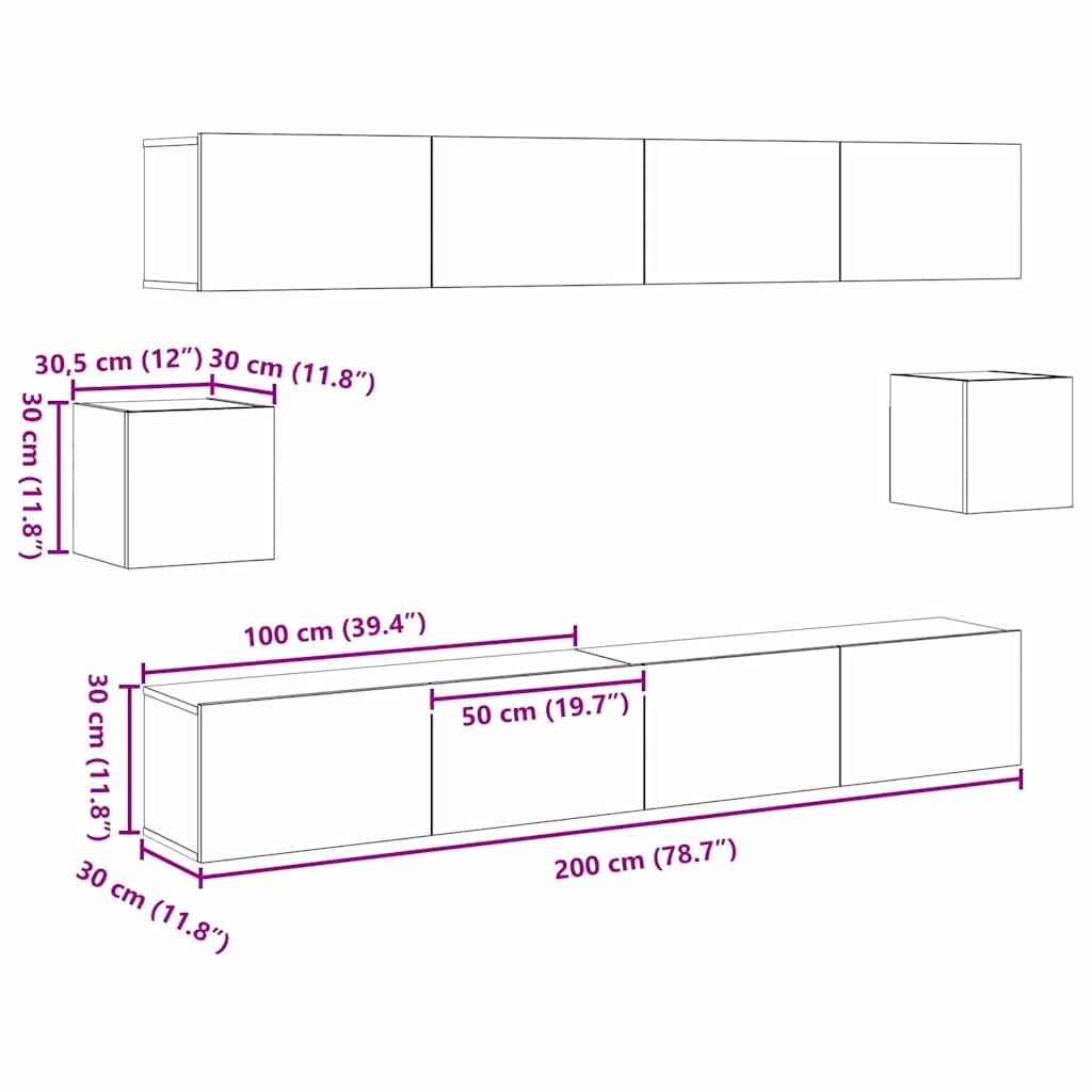 VIDAXL Komplet TV omaric 6 pcs Star les 100 x 30 x 30 cm les