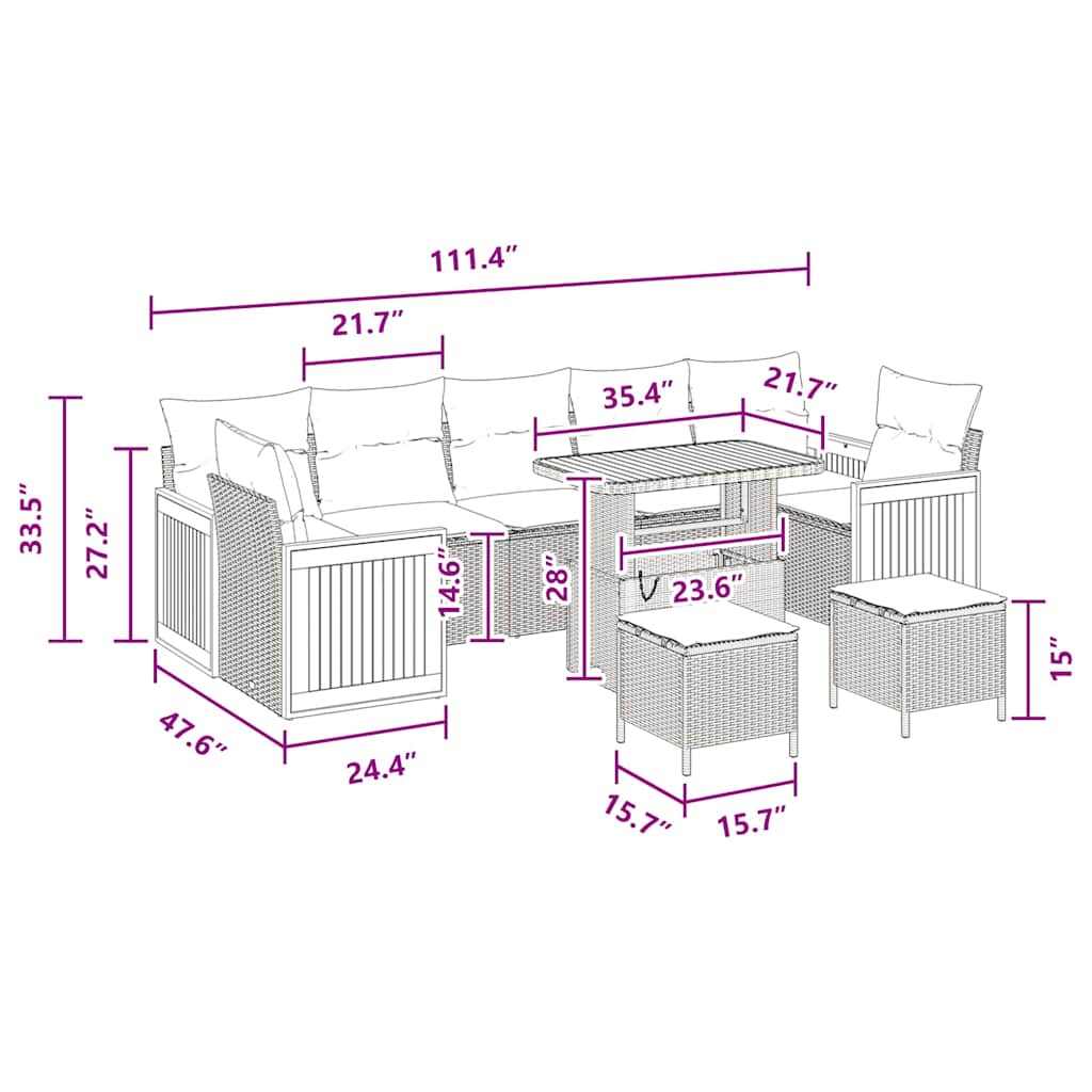 VIDAXL Vrtna sedežna garnitura 10 pcs Črna 90 x 55 x 71 cm poli ratan