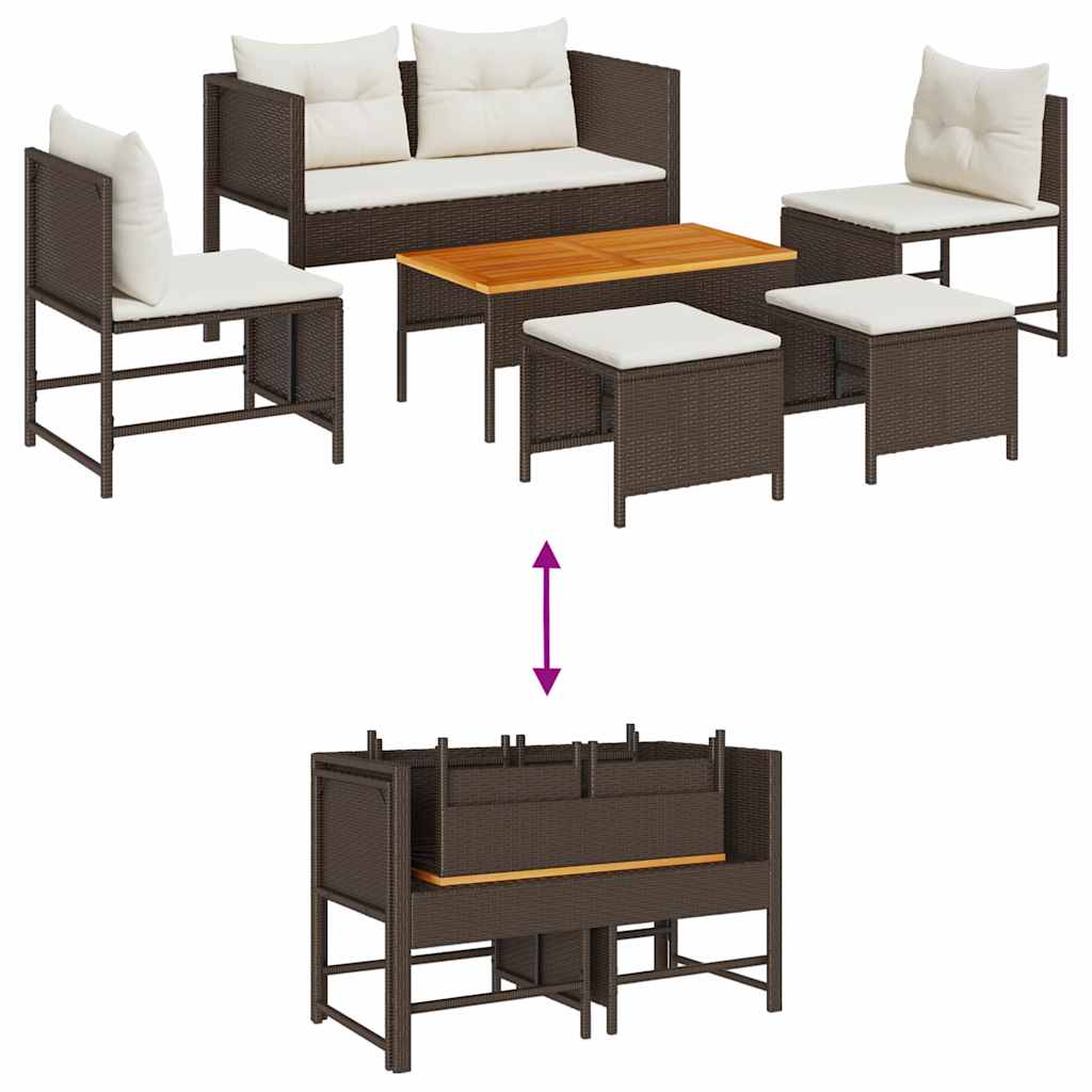 VIDAXL Vrtna sedežna garnitura 6 pcs Rjava in krem poli ratan