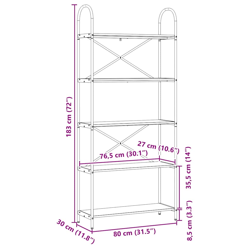 VIDAXL Knjižna polica Siva sonoma 80 x 30 x 183 cm Konstruiran les