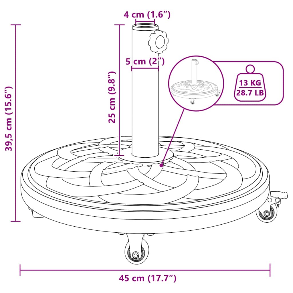 Ta moderna podlaga za dežnik je elegantna in funkcionalna, odlična za nadgradnjo zunanjih prostorov, kot so vrtovi in terase. Super je za varno pritrditev dežnikov, z dodatkom art deco stila, ki združuje drzno geometrijsko obliko z minimalističnim pristopom. Idealna je dodatna oprema, ki poskrbi, da je vaša senca stabilna in vizualno privlačna v vsakem zunanjem prostoru.