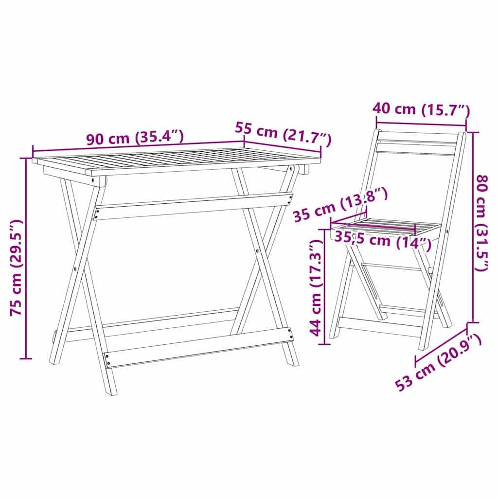 Komplet bistro pohištva iz trdnega akacijevega lesa prinaša čudovit rustikalen pridih tvojemu vrtu ali terasi. Narejen je za zunanjo uporabo in je idealen za obroke na prostem v tistih čudovitih poletnih dneh ali živahnih pomladnih popoldnevih. Izdelan iz robustnega akacijevega lesa, njegova lepa naravna barva ga naredi zelo trpežnega. Kvadratna zasnova in zložljivi stoli ustvari prijetno mesto za druženja, obroke ali preprosto uživanje v naravi.