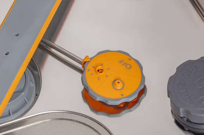Dve visokotlačni šobi v zadnjem delu kadi učinkovito odstranita najtrdovratnejše ostanke hrane na loncih, pekačih in steklenicah. Šobi lahko vklopite ločeno ali istočasno.