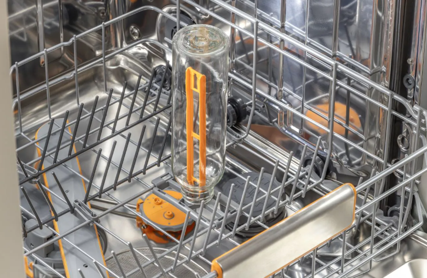 Posebno držalo in ciljani vodni curki omogočajo temeljito čiščenje steklenic različnih velikosti, tudi na težko dostopnih mestih.