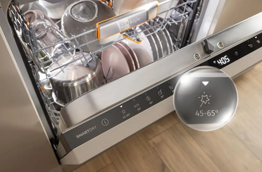 Po končanem ciklu se vrata stroja samodejno rahlo odprejo, s čimer se sprosti para in posoda hitreje ter popolneje osuši – tudi plastična.