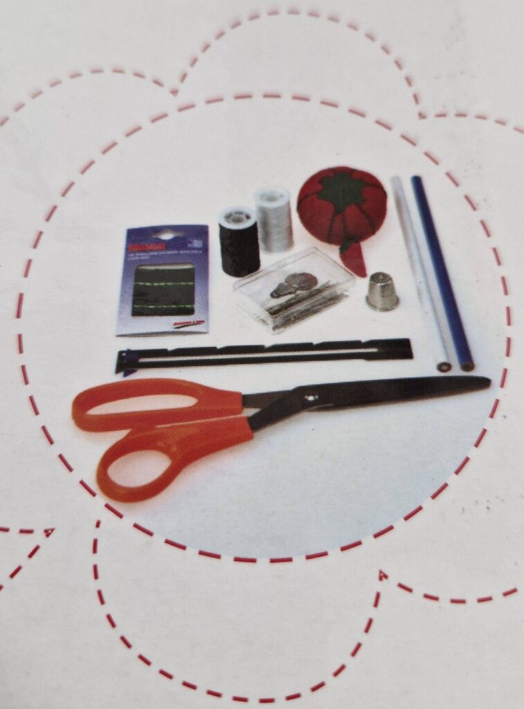 Posebnost ob nakupu je tudi, da je priložen tudi začetni mini šiviljski set, ki vsebuje: škarje, navadne ročne igle, navadne bucike, vdevalec nitke za ročne igle, črn in bel sukanec, blazinica za bucike, bela in modra kreda v svinčniku, naprstnik in merilo za šive!