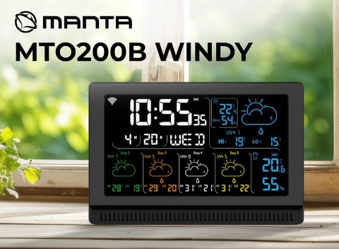 Vremenska napoved je ključna funkcija pametne vremenske postaje Manta MTO100B WINDY. Zahvaljujoč natančnim podatkom in naprednim tehnologijam postaja dnevno zagotavlja hitre in natančne podatke o temperaturi, padavinah in številnih drugih dejavnikih. Postaja ima vgrajen velik barvni LCD zaslon, ki ga obdaja okvir v modernem stilu, postavite pa jo lahko na katero koli površino. Na zaslonu so prikazani vsi podatki, ki jih meri postaja in njen priložen brezžični senzor. Vremenska postaja ponuja tudi WiFi povezovanje z brezplačno aplikacijo za pametne telefone in mobilne naprave, preko katere lahko spremljate vse razmere. V kompletu je priložen tudi 1 brezžični senzor, ki ga lahko postavite zunaj ali notri in bo meril podatke, ki jih bo nato prikazovala vremenska postaja.