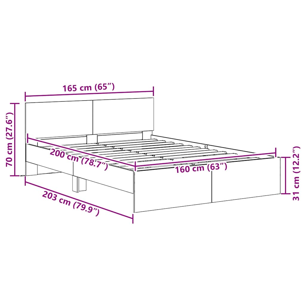 VIDAXL posteljni okvir z LED osvetlitvijo, inženirski les, črna orehovina, 165×203×70 cm