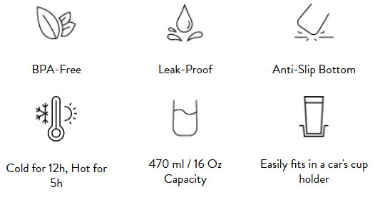 Dvojna stena z vakumom bo poskrbela za odlično izolacijo, tako da bo napitek hladen do 12 ur ali vroč do 5 ur.