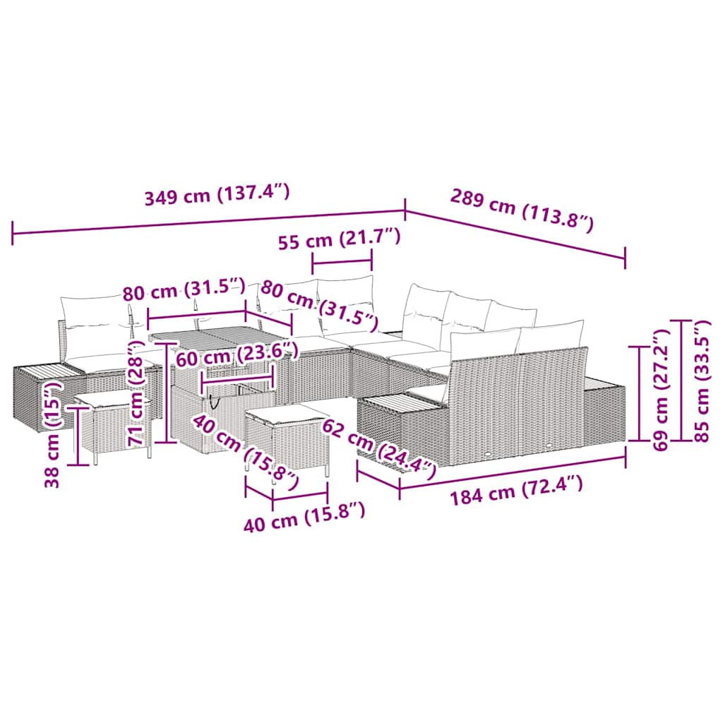 VIDAXL vrtna sedežna garnitura z blazinami, 13-delna, poli ratan