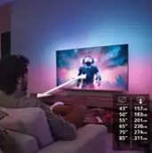 Edinstvena 3-stranska Ambilight tehnologija projicira barvno svetlobo na steno za televizorjem in se dinamično prilagaja dogajanju na zaslonu. Slika se vizualno razširi izven robov televizorja in ustvari izjemno poglobljeno doživetje, ki ga brez Ambilighta ne boste več želeli.