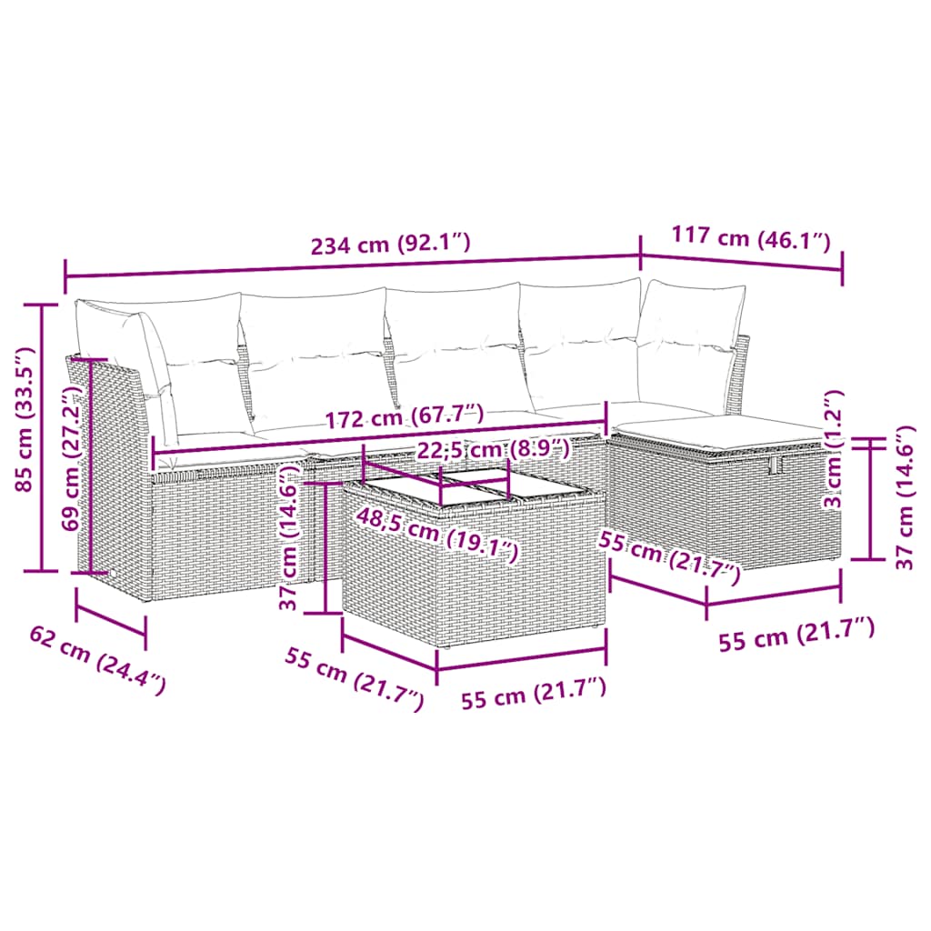 VIDAXL vrtna sedežna garnitura z blazinami, 6-delna, poli ratan