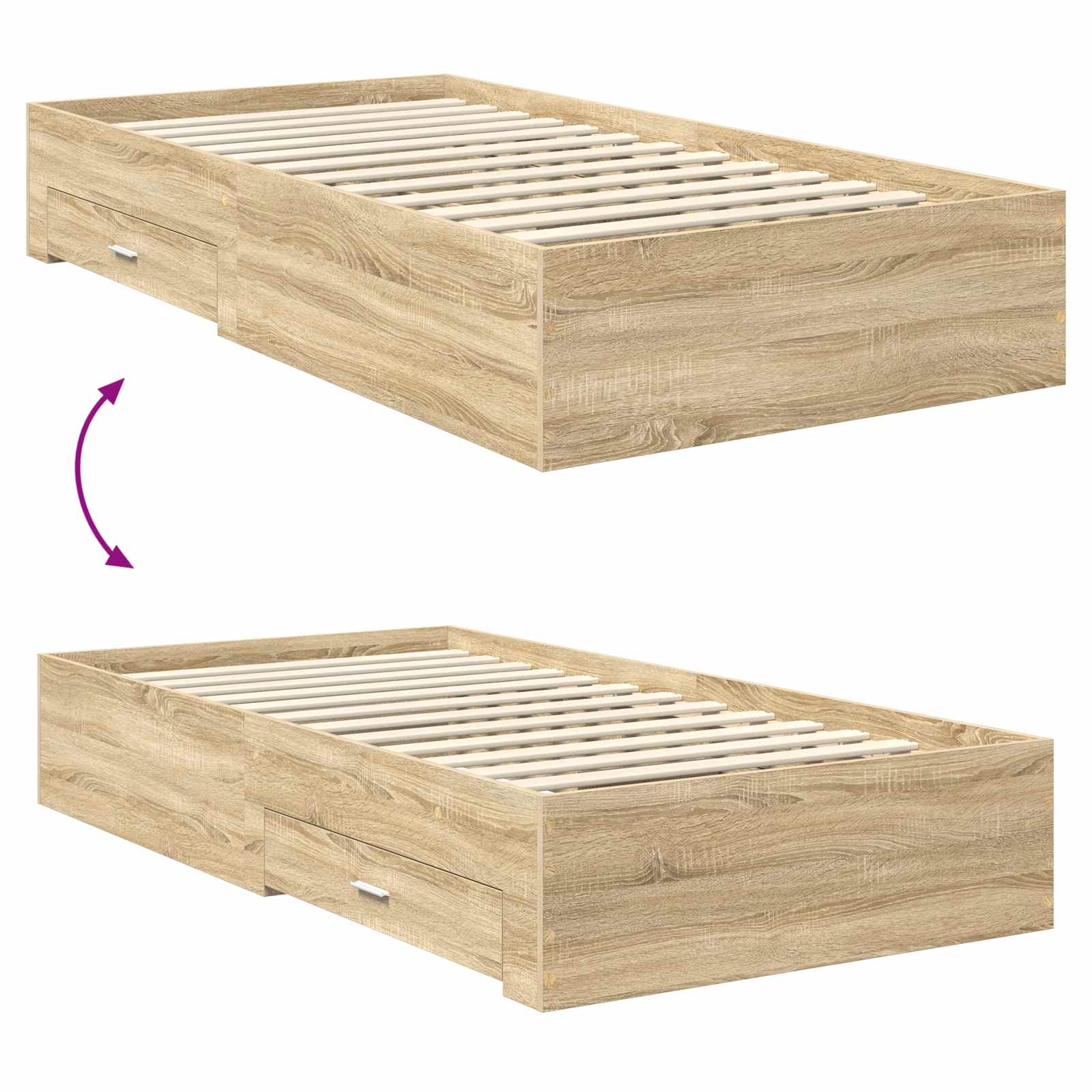 VIDAXL posteljni okvir s predali, inženirski les, sonoma hrast, 100×200 cm