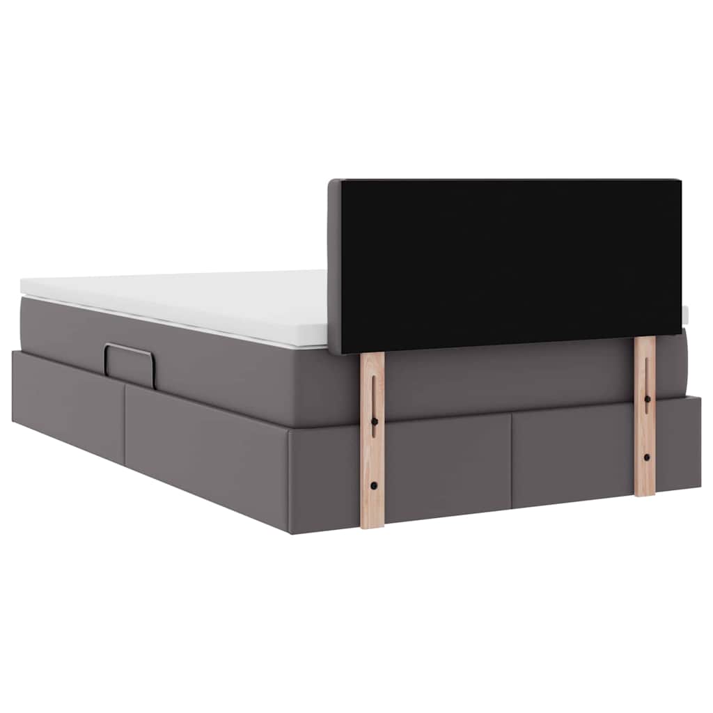 VIDAXL otomanska postelja z vzmetnico, umetno usnje, siva, 140×194×88 cm
