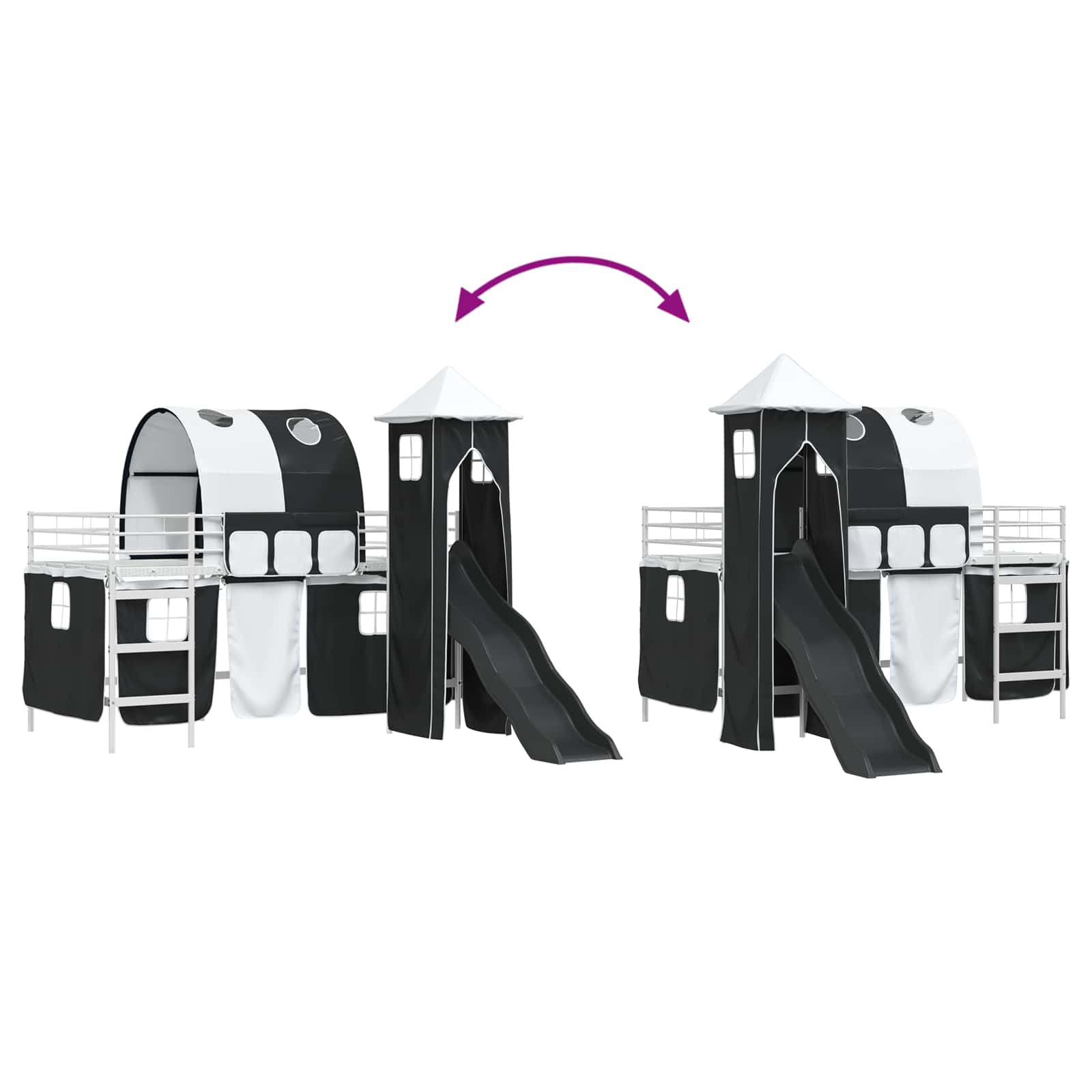 VIDAXL otroška postelja s toboganom in stolpom, kovina, bela/črna, 90×190 cm