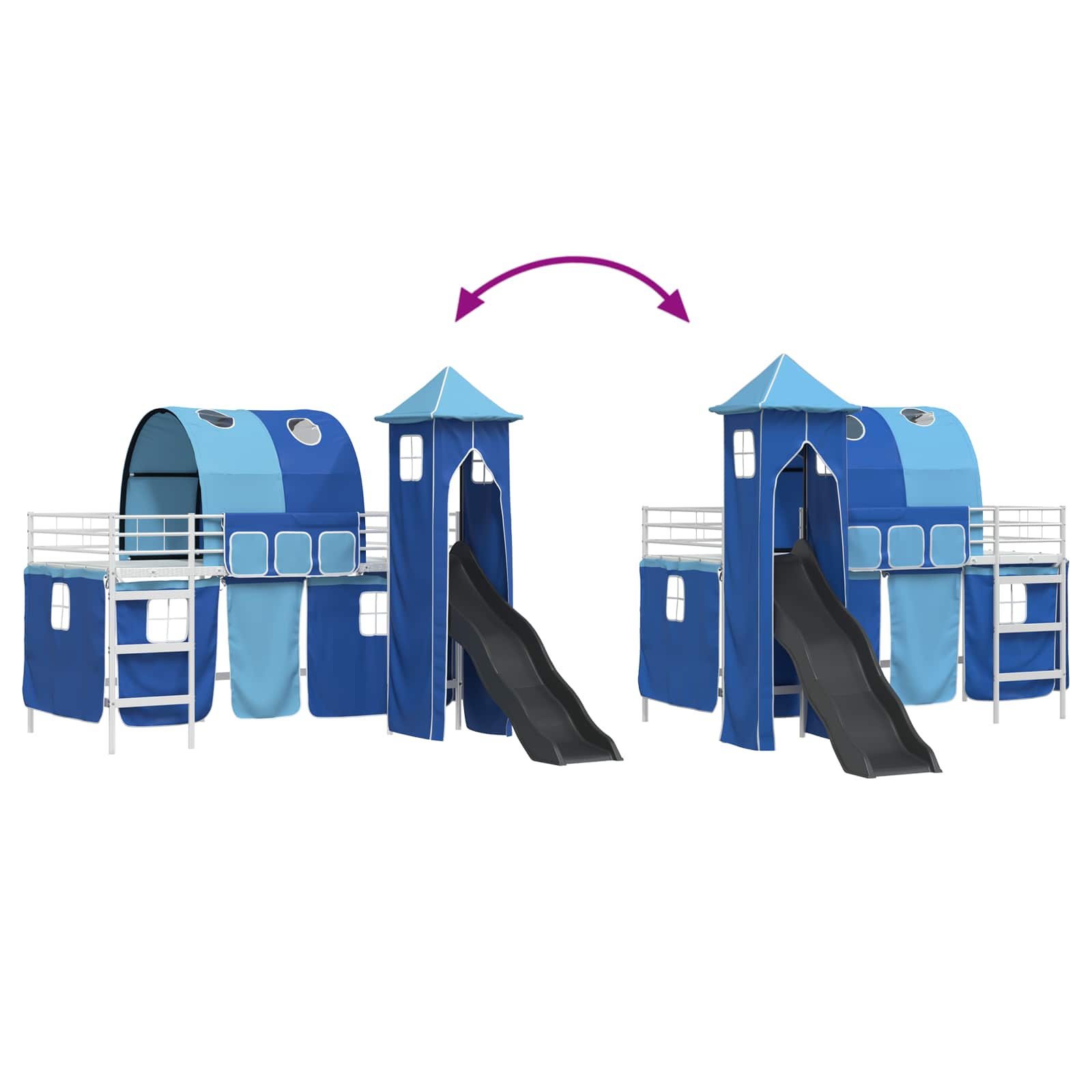VIDAXL otroška postelja s toboganom in stolpom, kovina, bela/modra, 90×190 cm